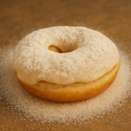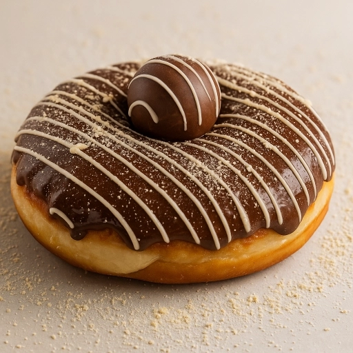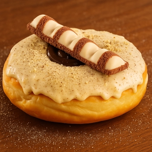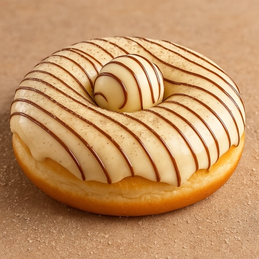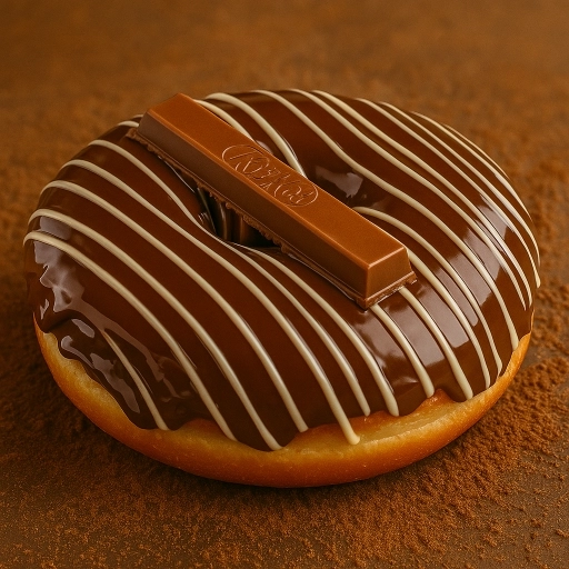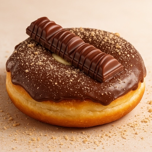 Donuts coberto com o melhor creme do MUNDO sabor KINDER, riscos ao leite polvilhado com leite em pó.