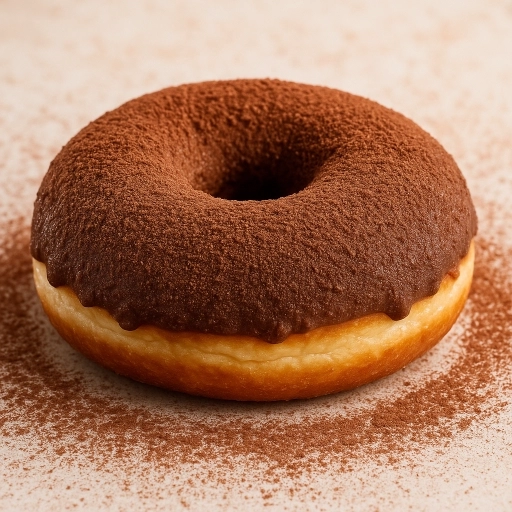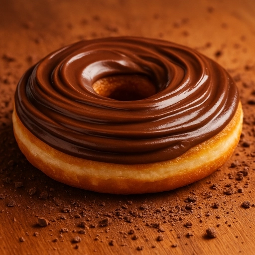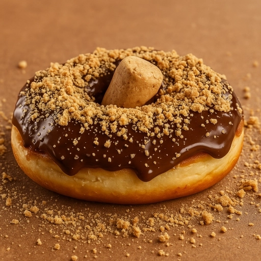 Donuts recheado de creme de brigadeiro, coberto de chocolate ao leite e granulado preto.